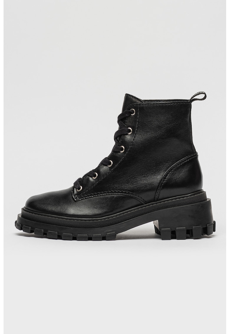 Caracteristici Tip: cu toc Culoare: negru Material: piele naturala Stil: casual Varf: rotund Tip toc: masiv Culoare elemente metalice: argintiu Sistem inchidere: siret Compozitie Partea superioara: piele Material interior: piele