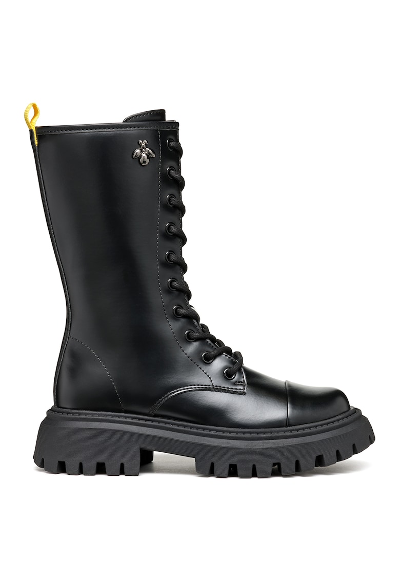 Caracteristici generale Tip produs: bocanci Culoare: negru Material: piele ecologica Stil: casual Lungime: peste glezna Sistem inchidere: siret
