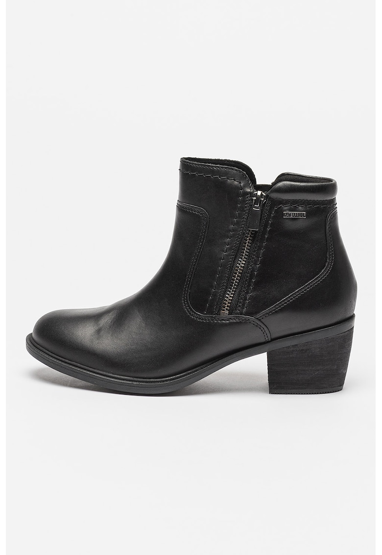 Caracteristici Tip: cu toc Culoare: negru Material: piele naturala Stil: casual Varf: alungit Tip toc: masiv Detalii: standard fit Culoare elemente metalice: gri metalizat Sistem inchidere: fermoar Compozitie Partea superioara: piele Material interior: piele