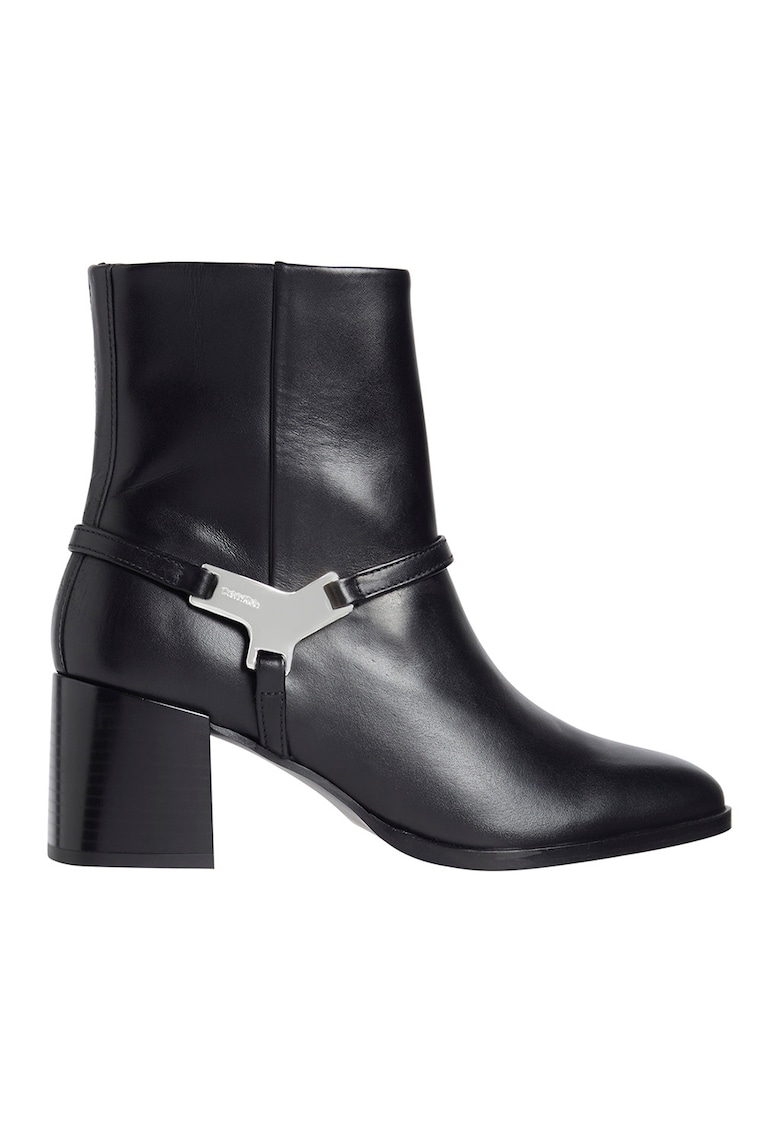 Caracteristici Tip: cu toc Culoare: negru Material: piele naturala Stil: casual Varf: ascutit Tip toc: masiv Culoare elemente metalice: argintiu Sistem inchidere: fermoar Compozitie Partea superioara: piele Material interior: textil Material talpa: alte materiale Dimensiuni Inaltime toc: 6 cm