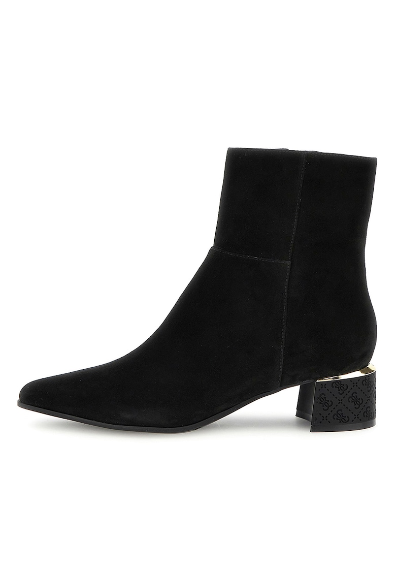 Caracteristici Tip: cu toc Culoare: negru Material: piele intoarsa Imprimeu: uni Stil: casual Varf: ascutit Tip toc: masiv Culoare elemente metalice: auriu Sistem inchidere: fermoar Compozitie Partea superioara: piele intoarsa Material interior: alte materiale Material talpa: alte materiale Dimensiuni Inaltime toc: 4 cm