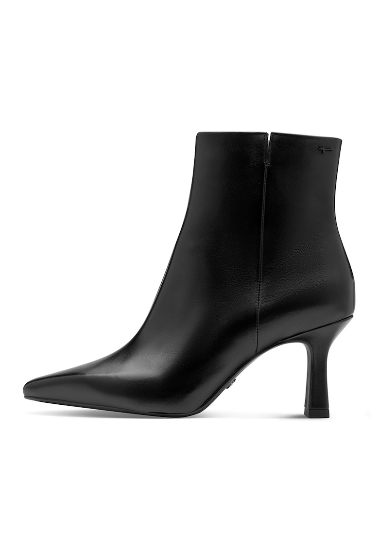Caracteristici Tip: cu toc Culoare: negru Material: sintetic Imprimeu: uni Stil: casual Varf: ascutit Tip toc: clasic Culoare elemente metalice: auriu rose Sistem inchidere: fermoar Compozitie Partea superioara: alte materiale Material interior: alte materiale