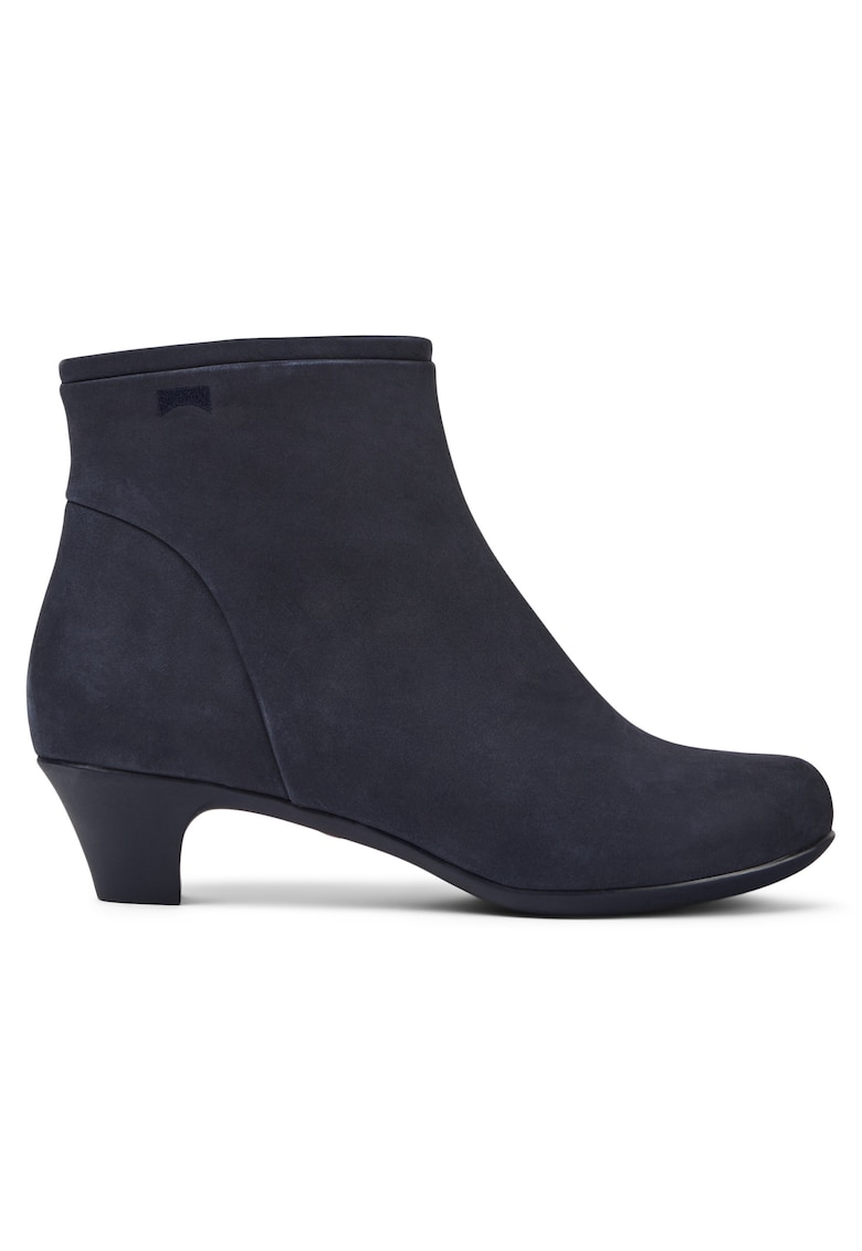 Caracteristici Tip: cu toc Culoare: bleumarin Material: piele naturala Imprimeu: uni Stil: elegant Varf: rotund Tip toc: kitten Sistem inchidere: fermoar Compozitie Partea superioara: piele nabuc Material interior: textil Material talpa: alte materiale
