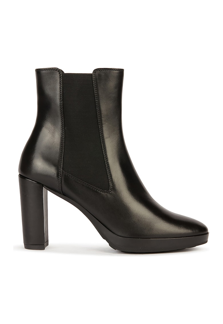 Caracteristici Tip: cu toc Culoare: negru Material: piele naturala Imprimeu: uni Stil: casual Varf: rotund Tip toc: masiv Tehnologie: geox respira® Sistem inchidere: fermoar Compozitie Partea superioara: piele