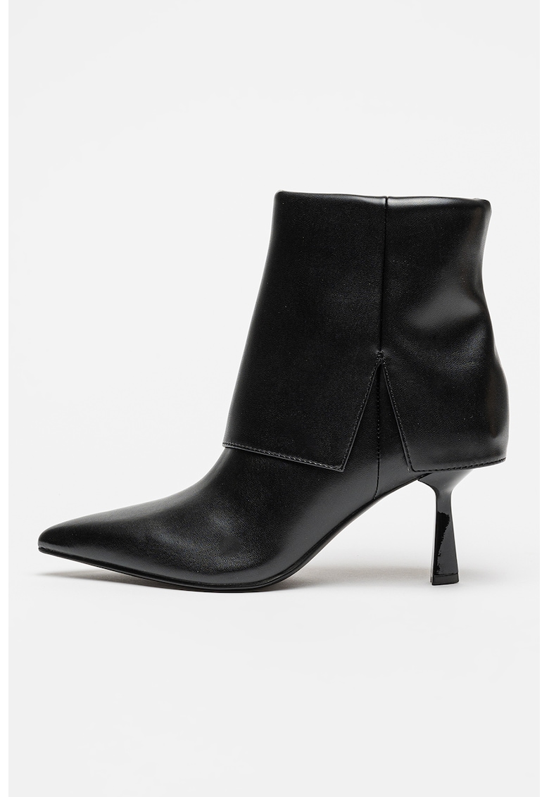 Caracteristici Tip: cu toc Culoare: negru Material: piele ecologica Imprimeu: uni Stil: casual Varf: ascutit Tip toc: stiletto Culoare elemente metalice: negru Sistem inchidere: fermoar Compozitie Partea superioara: alte materiale Material interior: alte materiale