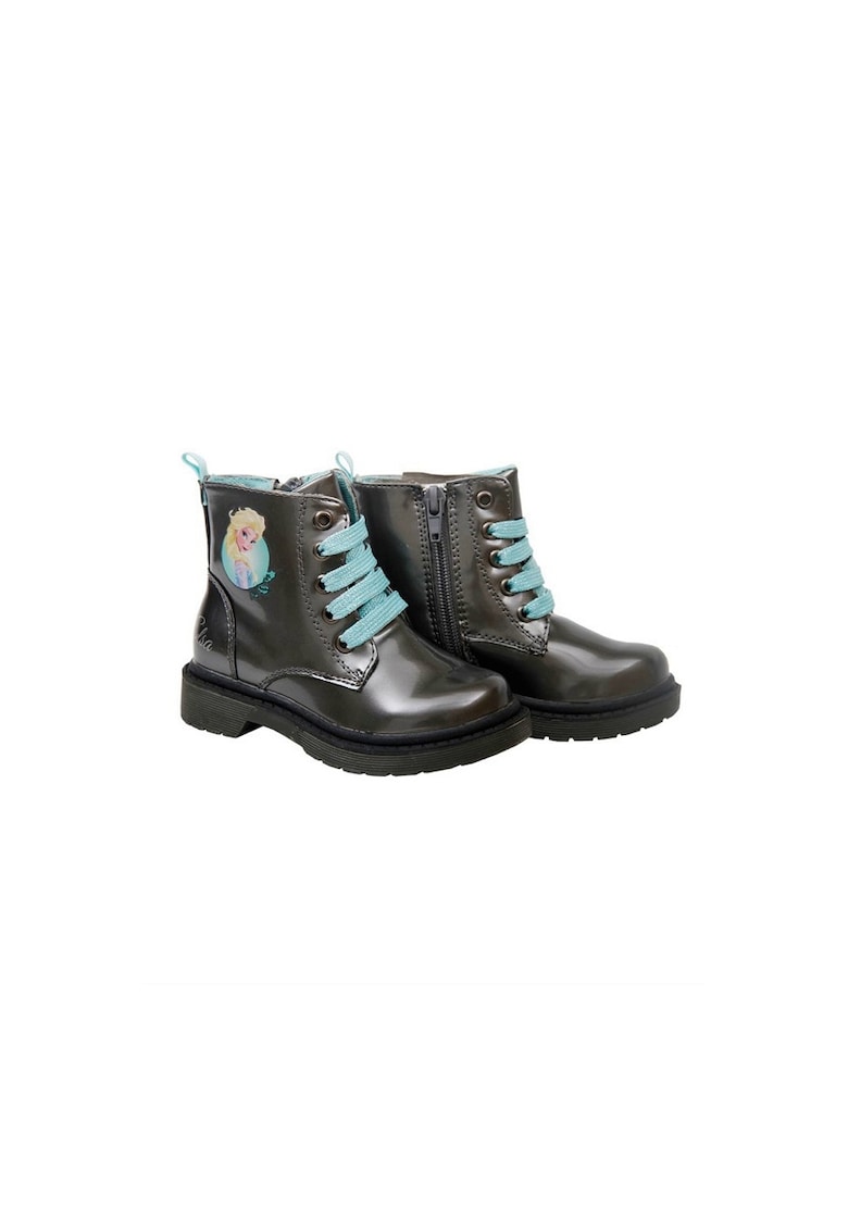 Caracteristici generale Tip produs: ghete Culoare: gri inchis Material: piele ecologica Stil: casual Lungime: peste glezna Sistem inchidere: fermoar Tip talpa: plata Poveste/Personaj: frozen Detalii material Material interior: material textil Material talpa: cauciuc