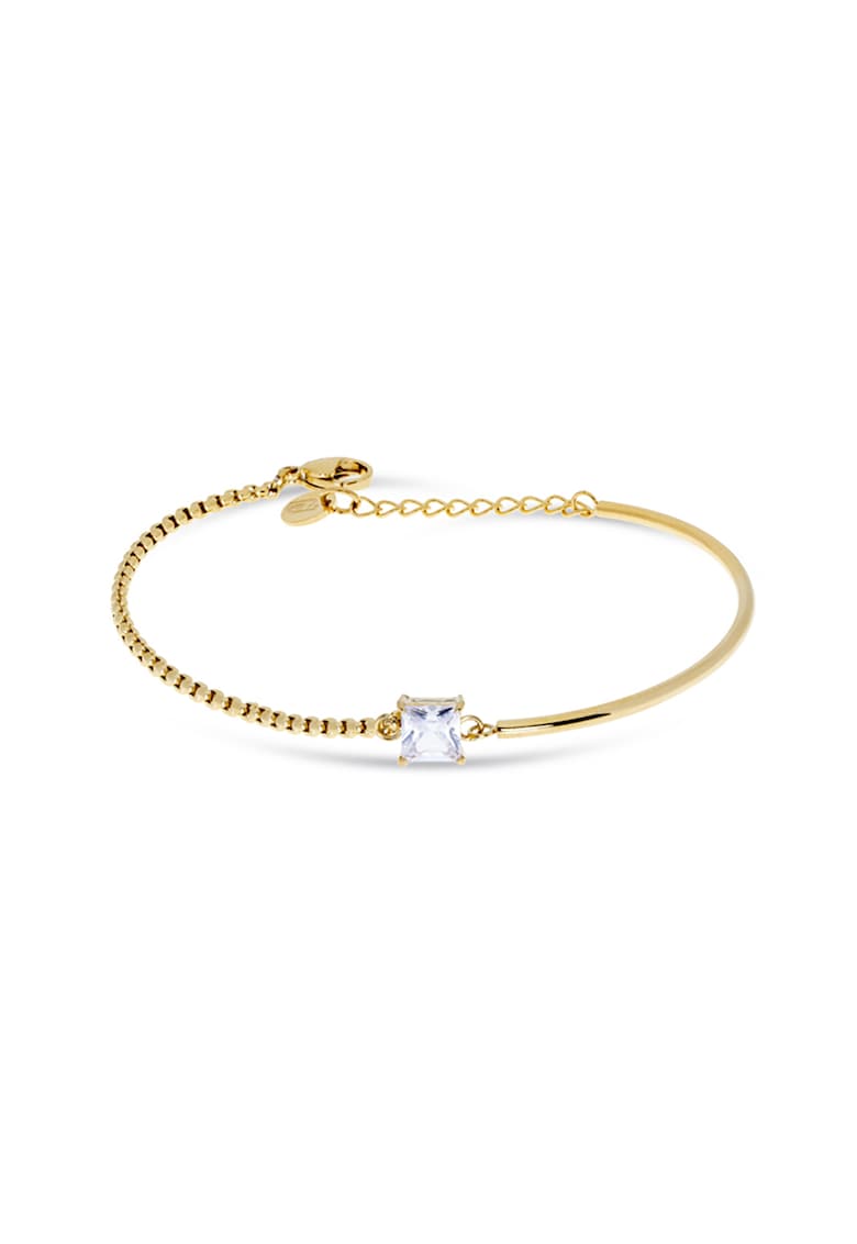 Caracteristici Tip produs: bratara Material: inox Culoare: auriu Sistem inchidere: lobster Ambalaj: produsul este livrat in ambalaj personalizat . Compozitie Compozitie: inox Pietre: zirconiu Placaj: ip Dimensiuni Lungime: 17+3 cm Informatii suplimentare: a se evita lovirea