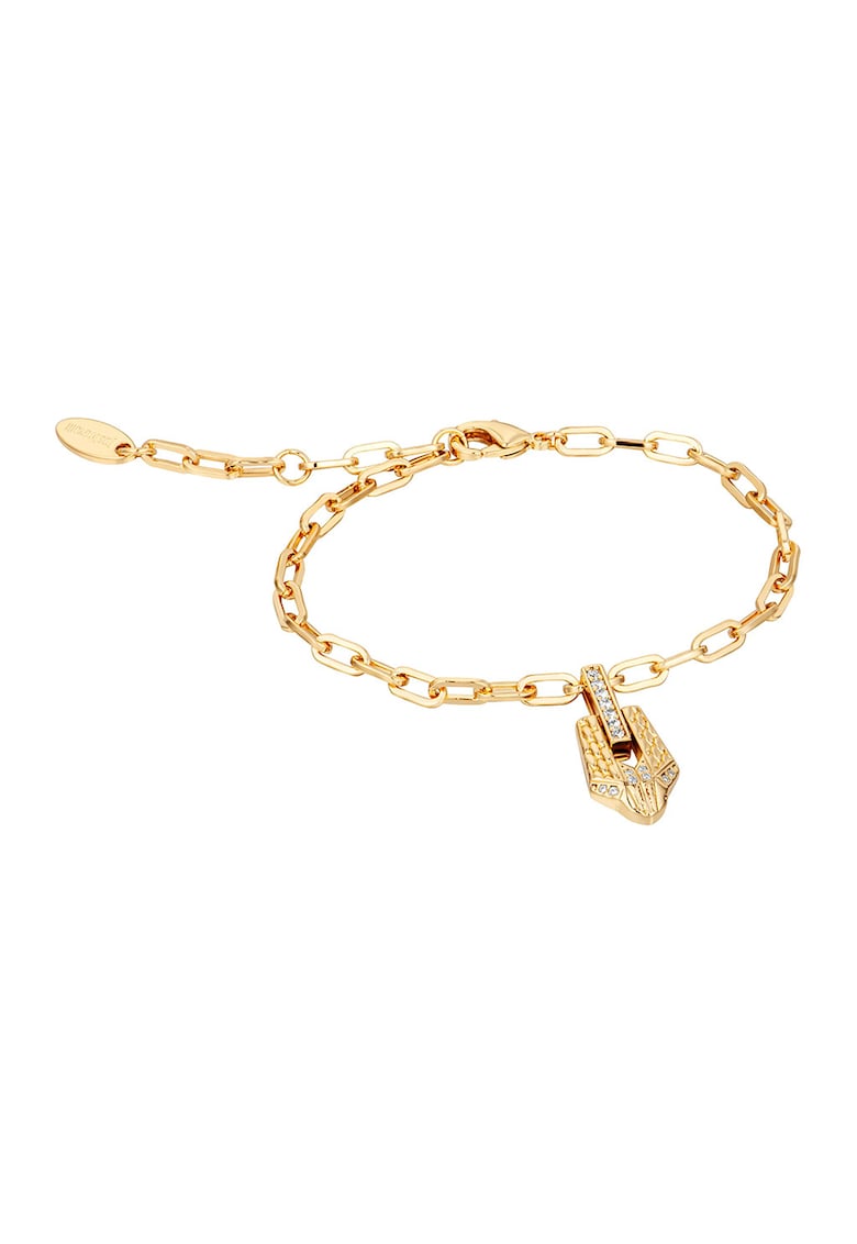 Caracteristici Tip produs: bratara Material: alama Culoare: auriu Ambalaj: produsul se livreaza in ambalaj personalizat. Compozitie Compozitie: alama Pietre: zirconiu Placaj: ip Dimensiuni Lungime: 16 + 4 cm Informatii suplimentare: a se evita lovirea