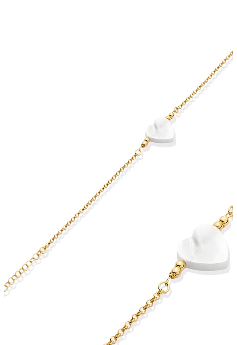 - auriu Detalii: ajustabila Sistem inchidere: lobster Ambalaj: produsul se livreaza in ambalaj personalizat. Gramaj: 2.5 g Compozitie Compozitie: argint 925 Pietre: sidef Placaj: prin electroliza Dimensiuni Lungime: 15 + 5 cm Informatii suplimentare: a se evita socurile mecanice si termice