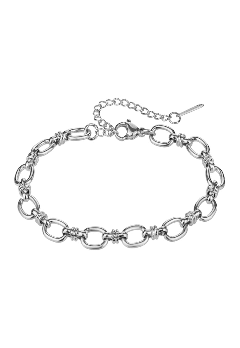 Caracteristici Tip produs: bratara Material: inox Culoare: argintiu Detalii: design cu lant