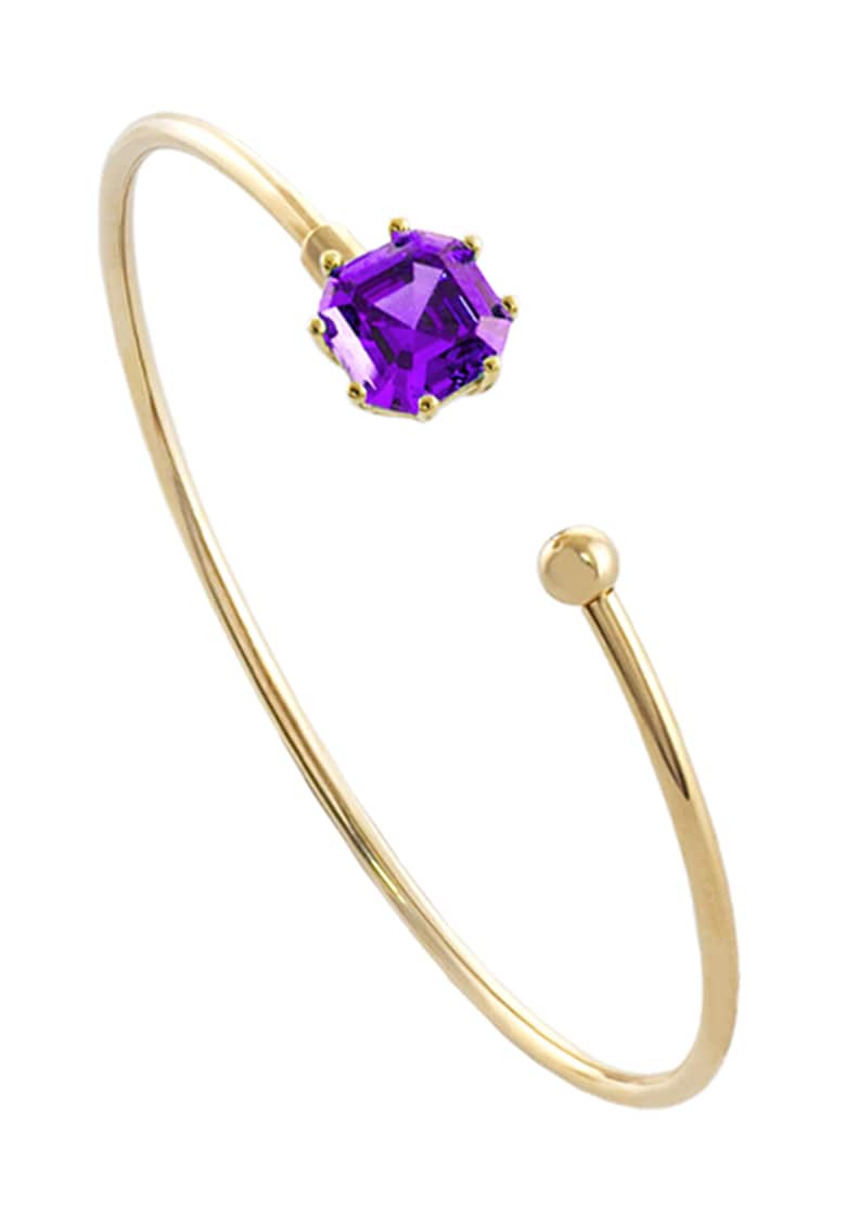 - ametist Detalii: fara inchidere Sistem inchidere: fara inchidere Ambalaj: produsul se livreaza in ambalaj personalizat. Gramaj: 4.3 g Compozitie Compozitie: argint 925 Pietre: zirconiu Placaj: aur de 18k Dimensiuni Diametru: 5.5 cm