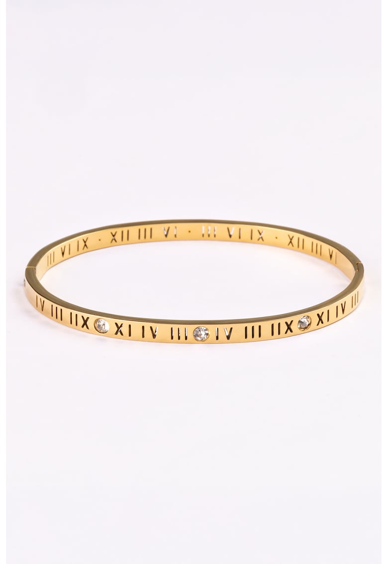- suprafete abrazive. Sistem inchidere: tip bijuterie Ambalaj: produsul se livreaza in ambalaj personalizat. Compozitie Compozitie: otel inoxidabil Pietre: cristale Placaj: aur galben de 18k Dimensiuni Diametru: 6.5 cm Latime: 4 mm