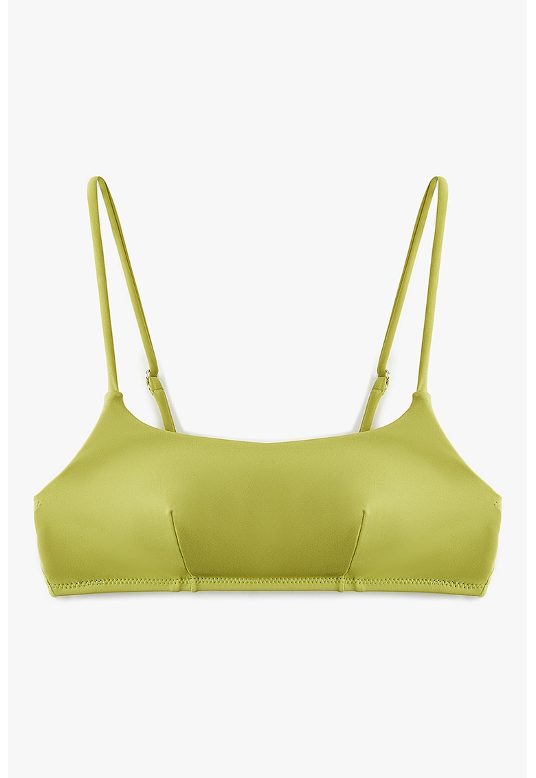 Detalii generale Tip produs: bustiera Culoare: verde masliniu Imprimeu: uni Forma cupa: bralette Material: sintetic Barete: ajustabile Design Tip sutien: fara burete Sustinere metalica: fara sarma Compozitie Exterior: 81% poliamida