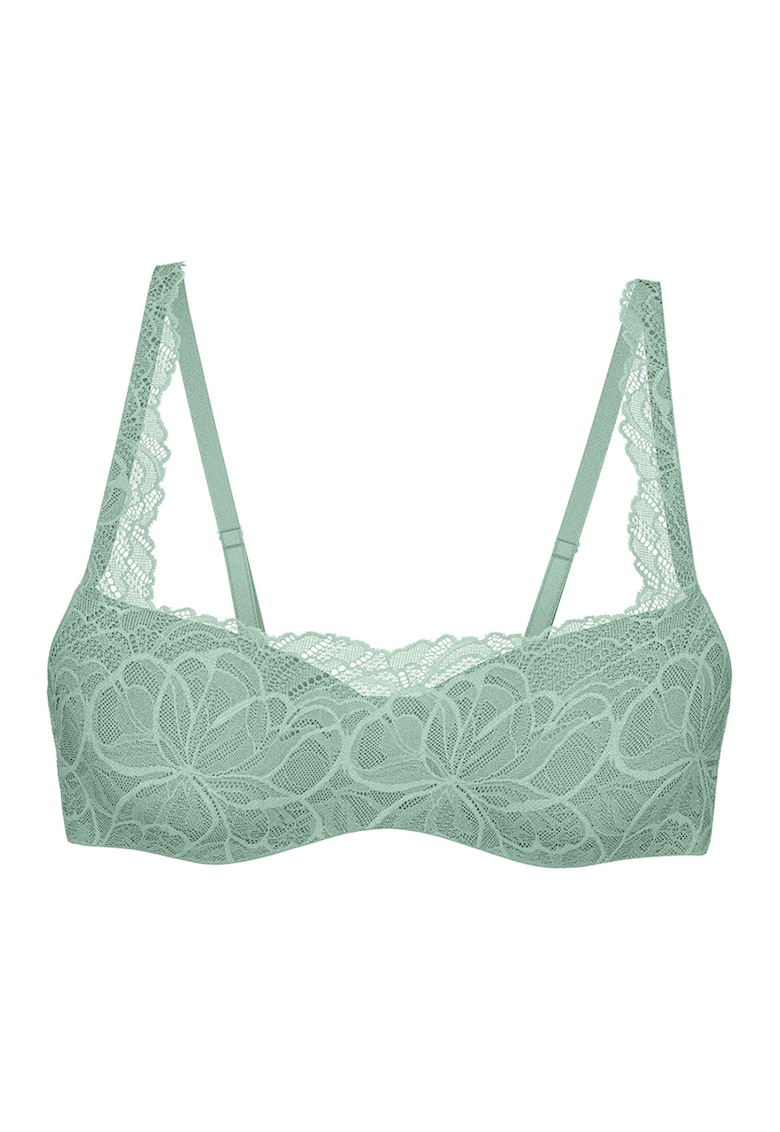 - poliamida Imprimeu: uni Barete: ajustabile Forma cupa: balconette Burete cupa: cu burete Sustinere metalica: cu sarma Detalii: dantela cu model floral Compozitie Exterior: 51% poliamida