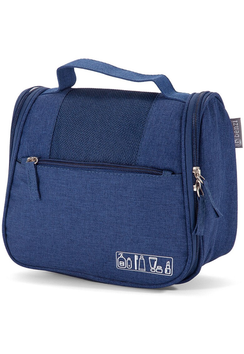 Caracteristici generale Tip produs: geanta cosmetice Culoare: bleumarin Tip: clasic Destinat pentru: voiaj Tip inchidere: fermoar Numar compartimente: 1 Compozitie Material exterior: poliester Dimensiuni Lungime: 21 cm Adancime: 10 cm Inaltime: 18 cm