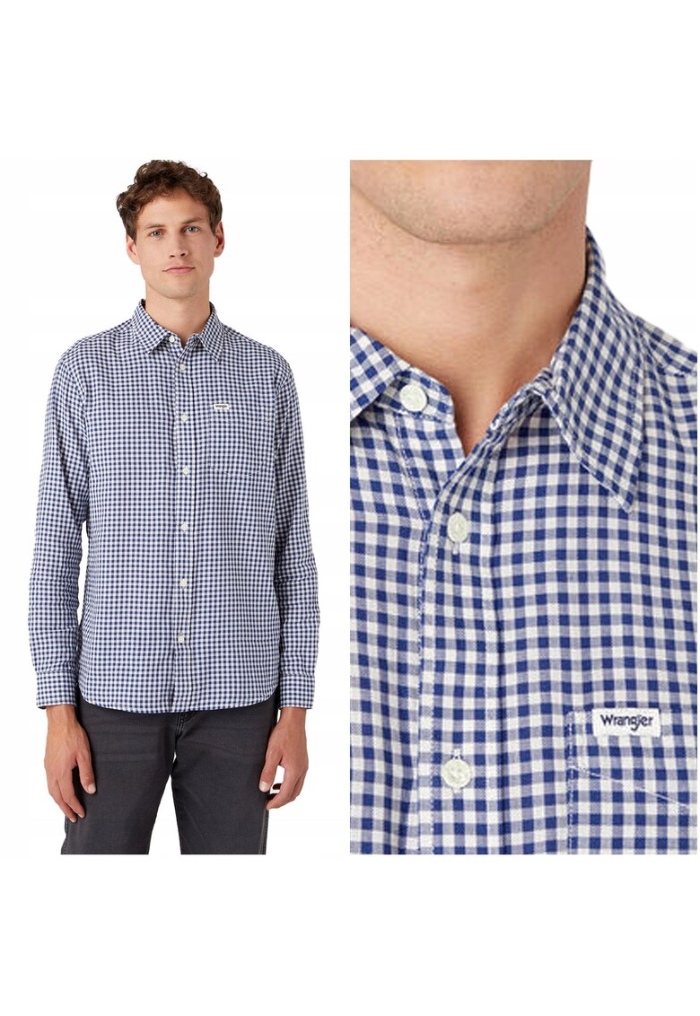 Caracteristici Culoare: albastru Material: bumbac Imprimeu: uni Stil: casual Croiala: regular fit Lungime maneca: maneca lunga Buzunare: 1 buzunar Detalii: 100 % bumbac Sistem inchidere: nasturi Linie Brand: wrangler Compozitie Exterior: 100% bumbac Material garnituri: 100 % bumbac