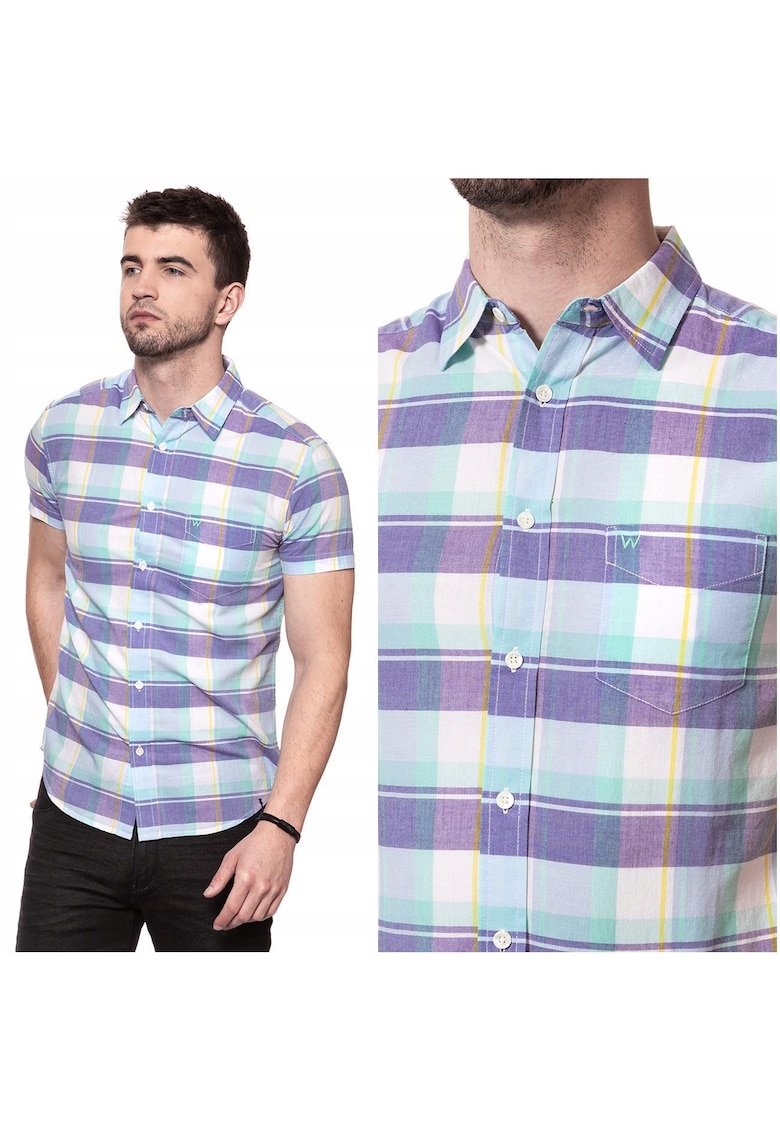 Caracteristici Culoare: violet Material: bumbac Imprimeu: carouri Stil: casual Croiala: regular fit Lungime maneca: maneca scurta Buzunare: fara buzunar Detalii: 100 % bumbac Sistem inchidere: nasturi Linie Brand: wrangler Compozitie Exterior: 100% bumbac Material garnituri: 100 % bumbac