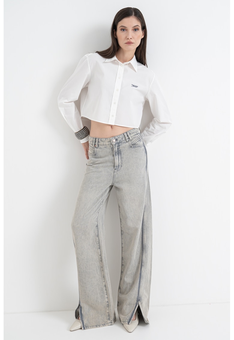 Caracteristici Culoare: alb Imprimeu: uni Stil: casual Material: bumbac Croiala: crop Lungime maneca: maneca lunga Sistem inchidere: nasturi Compozitie Exterior: 100% bumbac Info model Modelul poarta un produs de marimea S. Marimi model: 176 cm inaltime