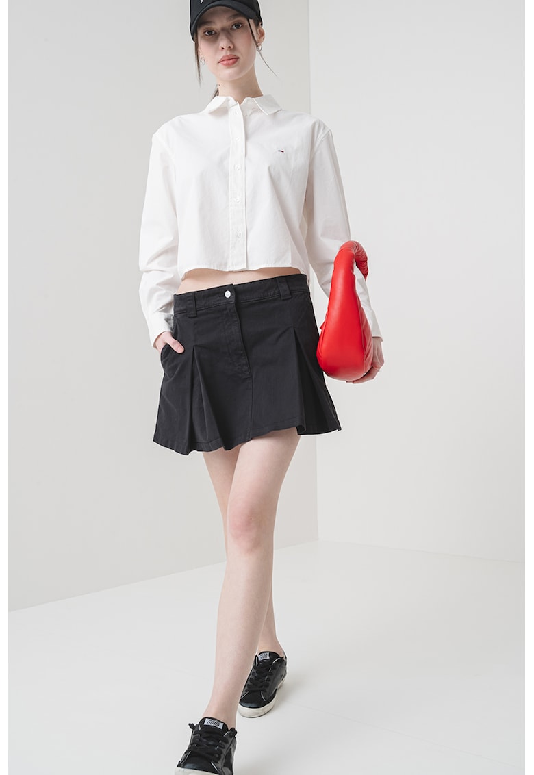 Caracteristici Imprimeu: uni Stil: casual Material: bumbac organic Croiala: crop Guler: ascutit Lungime maneca: maneca lunga Sistem inchidere: nasturi Compozitie Exterior: 100% bumbac organic Info model Modelul poarta un produs de marimea S. Marimi model: 177 cm inaltime