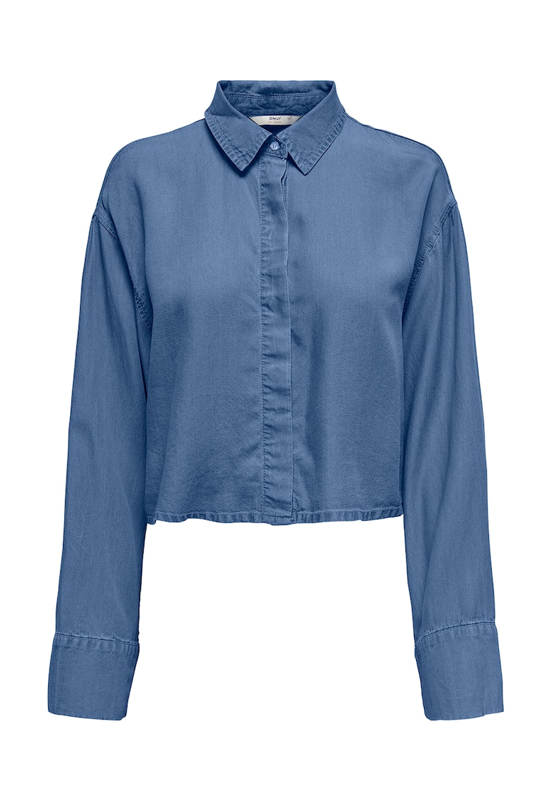 Caracteristici Culoare: albastru Imprimeu: uni Stil: casual Material: lyocell Croiala: crop Guler: ascutit Lungime maneca: maneca lunga Detalii: inchidere ascunsa