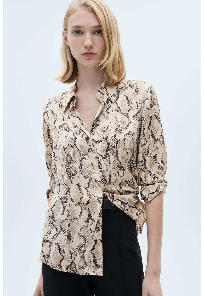 Caracteristici Culoare: bej Imprimeu: animal print Stil: elegant Material: poliester Croiala: regular fit Guler: clasic Lungime maneca: maneca lunga Detalii: marimile 3xl