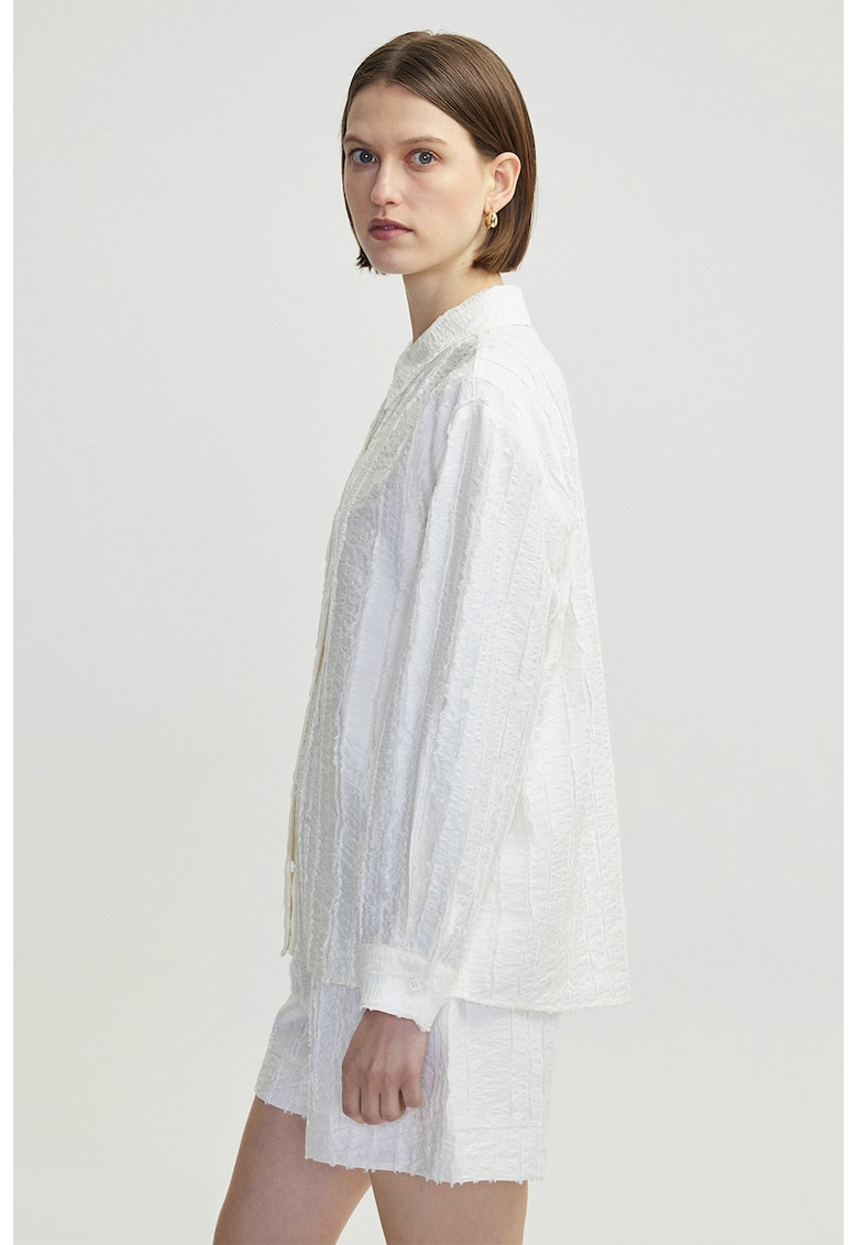 - poliamida Croiala: regular fit Guler: ascutit Lungime maneca: maneca lunga Detalii: aspect texturat Sistem inchidere: nasturi Compozitie Exterior: 85% viscoza