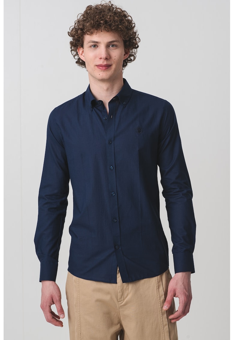 Caracteristici Culoare: bleumarin Material: bumbac Imprimeu: uni Stil: elegant Croiala: regular fit Guler: fixat cu nasturi Lungime maneca: maneca lunga Sistem inchidere: nasturi Compozitie Exterior: 100% bumbac Info model Modelul poarta un produs de marimea M. Marimi model: 190 cm inaltime