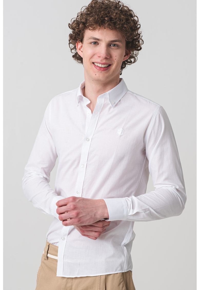 Caracteristici Culoare: alb optic Material: bumbac Imprimeu: uni Stil: elegant Croiala: regular fit Guler: fixat cu nasturi Lungime maneca: maneca lunga Sistem inchidere: nasturi Compozitie Exterior: 100% bumbac Info model Modelul poarta un produs de marimea M. Marimi model: 190 cm inaltime