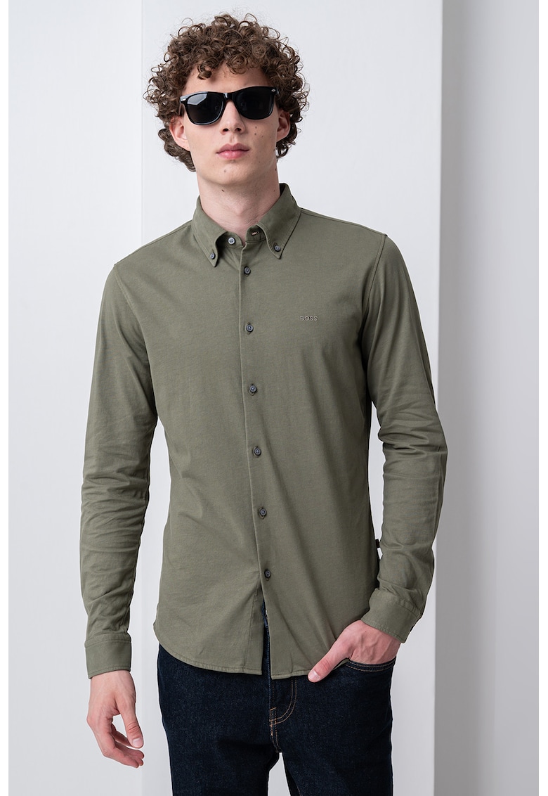 Caracteristici Culoare: kaki Material: bumbac Imprimeu: uni Stil: casual Croiala: regular fit Guler: fixat cu nasturi Maneci: mansete cu nasturi Lungime maneca: maneca lunga Sistem inchidere: nasturi Compozitie Exterior: 100% bumbac Info model Modelul poarta un produs de marimea M. Marimi model: 190 cm inaltime