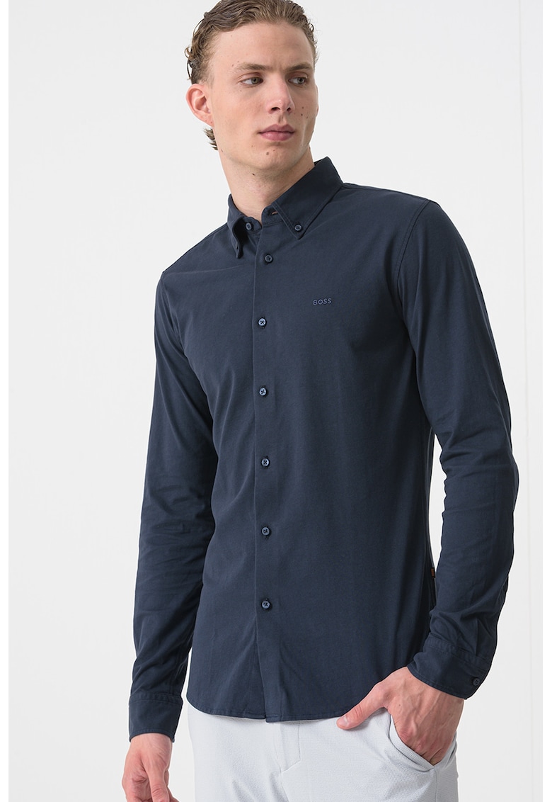 Caracteristici Culoare: albastru ultramarin Material: bumbac Imprimeu: uni Stil: elegant Croiala: slim fit Guler: clasic Lungime maneca: maneca lunga Sistem inchidere: nasturi Compozitie Exterior: 100% bumbac Info model Modelul poarta un produs de marimea M. Marimi model: 170 cm inaltime