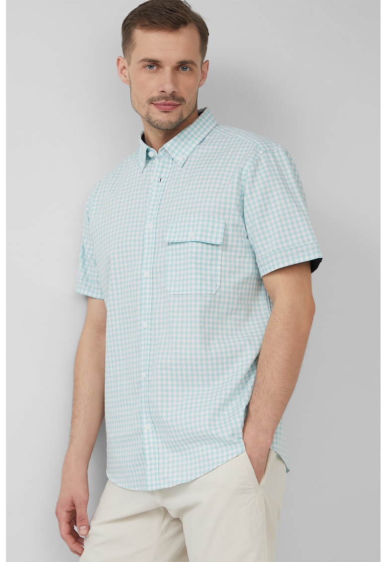 - albastru aquamarin Material: bumbac Imprimeu: carouri Stil: casual Croiala: regular fit Guler: fixat cu nasturi Lungime maneca: maneca scurta Buzunare: unul cu clapa si nasture pe piept Detalii: mansete rasucite Sistem inchidere: nasturi Compozitie Exterior: 100% bumbac