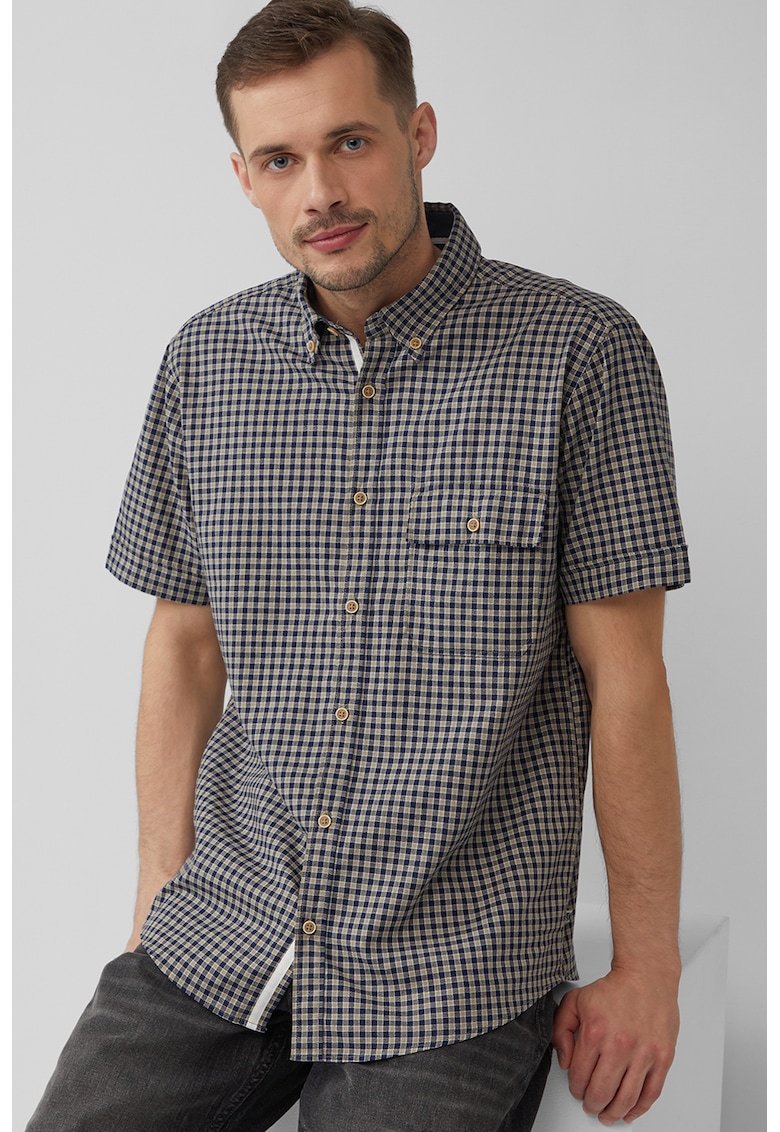 Caracteristici Culoare: gri inchis Material: bumbac Imprimeu: carouri Stil: casual Croiala: regular fit Guler: fixat cu nasturi Lungime maneca: maneca scurta Buzunare: unul cu clapa si nasture pe piept Sistem inchidere: nasturi Compozitie Exterior: 100% bumbac