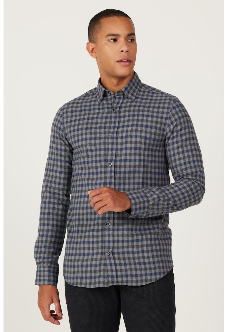 - albastru Material: sintetic Imprimeu: carouri Stil: casual Croiala: regular fit Guler: ascutit Lungime maneca: maneca lunga Sistem inchidere: nasturi Compozitie Exterior: 60% acril