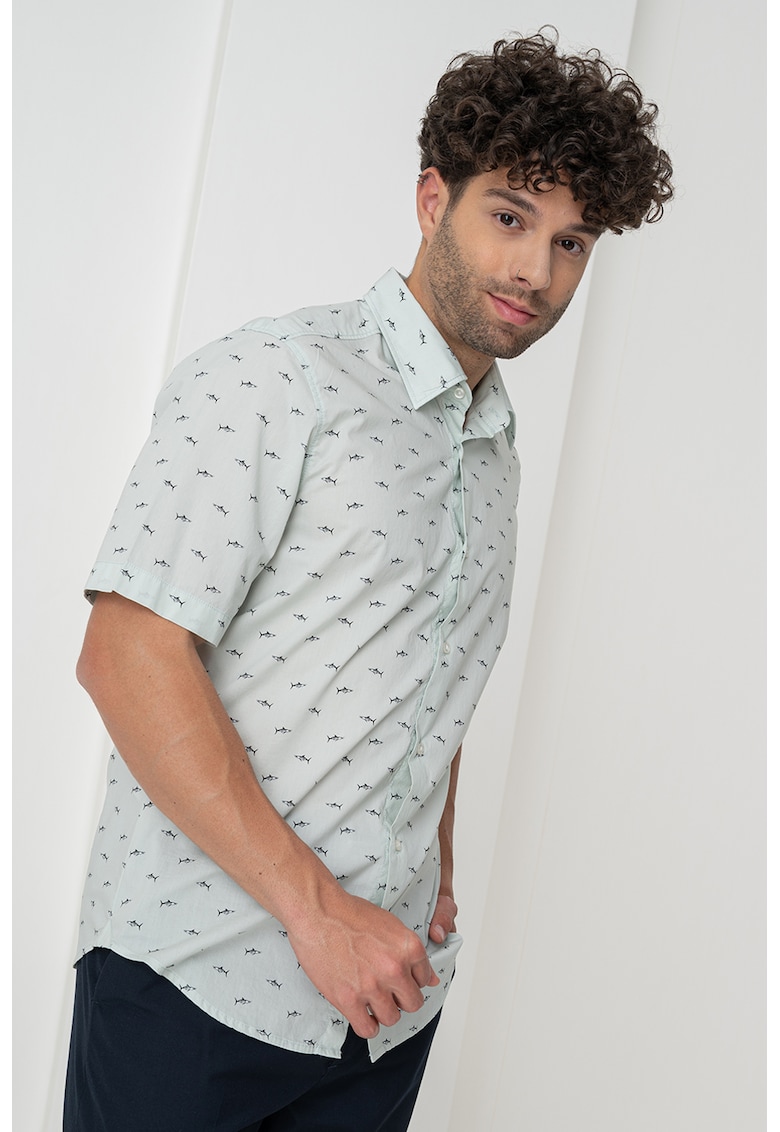 Caracteristici Culoare: verde pal Material: bumbac Imprimeu: grafic Stil: casual Croiala: regular fit Guler: ascutit Lungime maneca: maneca scurta Sistem inchidere: nasturi Compozitie Exterior: 100% bumbac Info model Modelul poarta un produs de marimea M. Marimi model: 179 cm inaltime