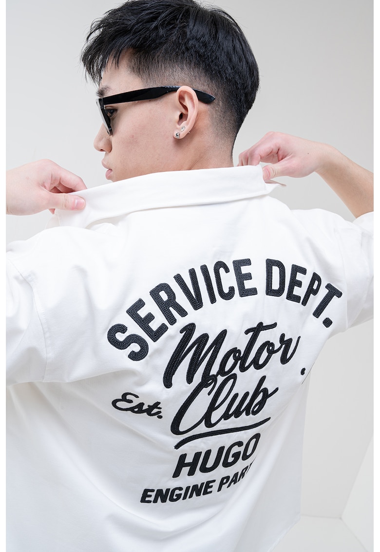 - negru Material: bumbac Imprimeu: text Stil: casual Croiala: regular fit Guler: ascutit Lungime maneca: maneca scurta Detalii: broderie Sistem inchidere: nasturi Compozitie Exterior: 100% bumbac Info model Modelul poarta un produs de marimea M. Marimi model: 183 cm inaltime