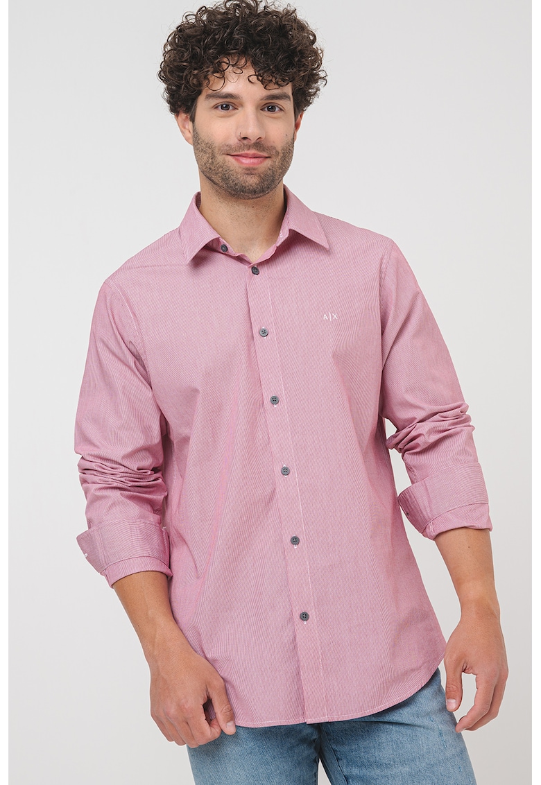 - alb Material: bumbac Imprimeu: dungi Stil: casual Croiala: regular fit Guler: clasic Lungime maneca: maneca lunga Sistem inchidere: nasturi Compozitie Exterior: 100% bumbac Info model Modelul poarta un produs de marimea M. Marimi model: 179 cm inaltime