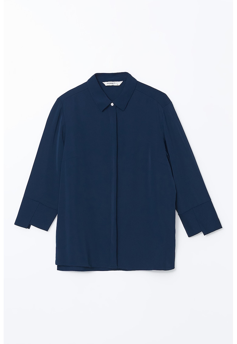 Caracteristici Culoare: bleumarin Imprimeu: uni Stil: casual Material: sintetic Croiala: regular fit Guler: clasic Tip maneca: cu mansete cu nasturi Lungime maneca: maneca trei sferturi Detalii: inchidere ascunsa Sistem inchidere: nasturi Compozitie Exterior: 100% poliester