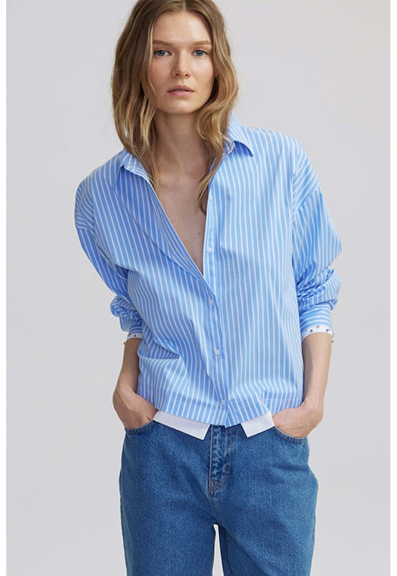 - albastru azur Imprimeu: dungi Stil: casual Material: bumbac