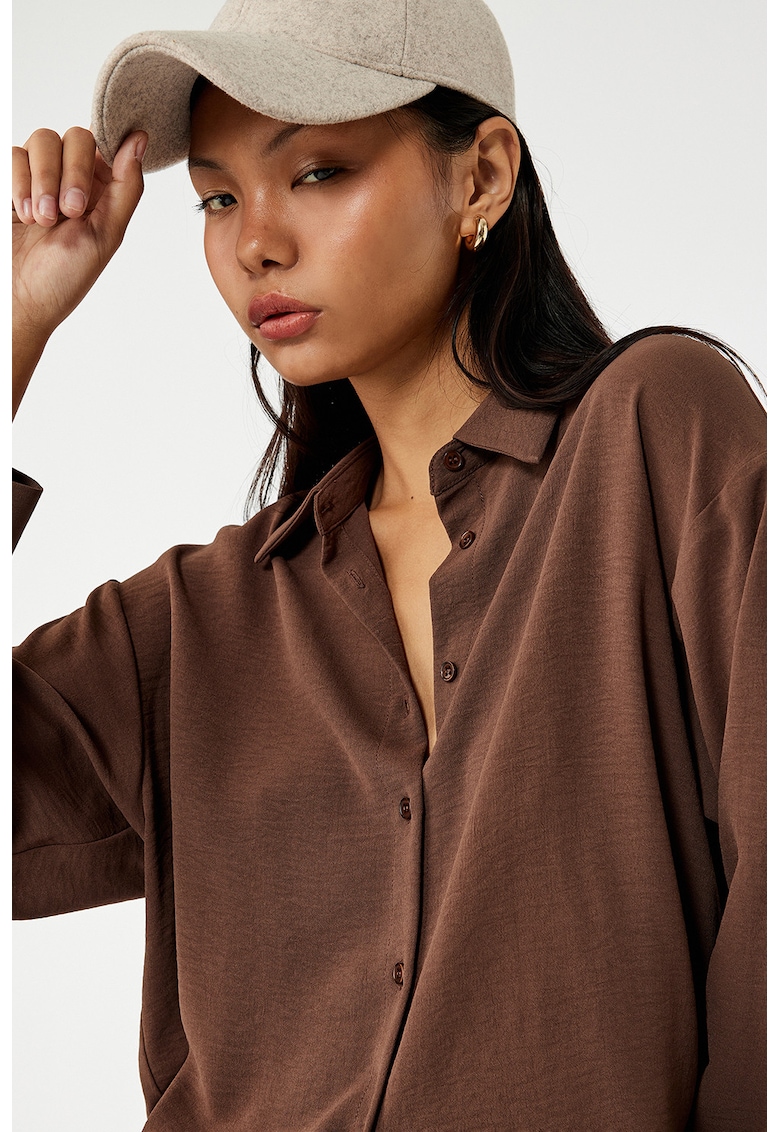 Caracteristici Culoare: caramel Imprimeu: uni Stil: casual Material: poliester Croiala: regular fit Guler: fixat cu nasturi Tip maneca: ampla