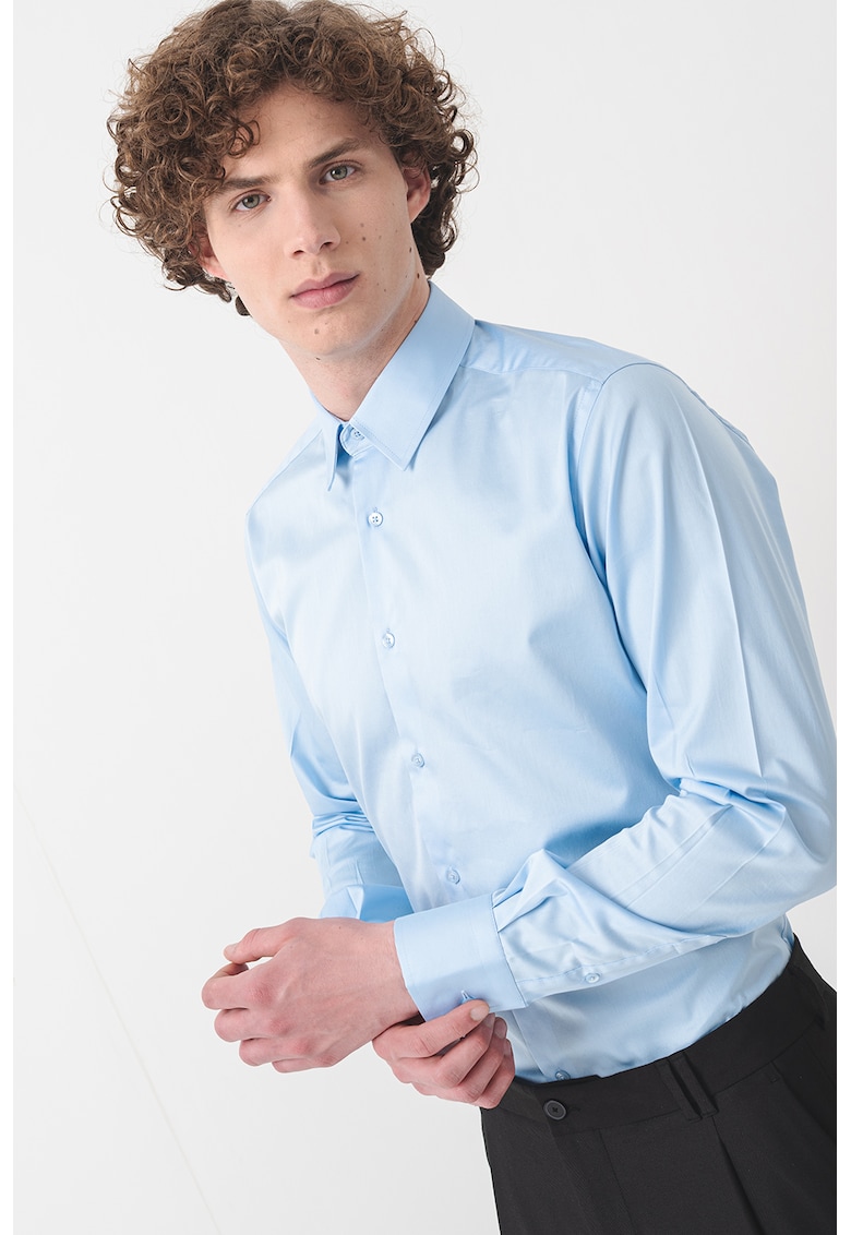 - elastan Imprimeu: uni Stil: casual Croiala: regular fit Guler: clasic Lungime maneca: maneca lunga Sistem inchidere: nasturi Compozitie Exterior: 98% bumbac