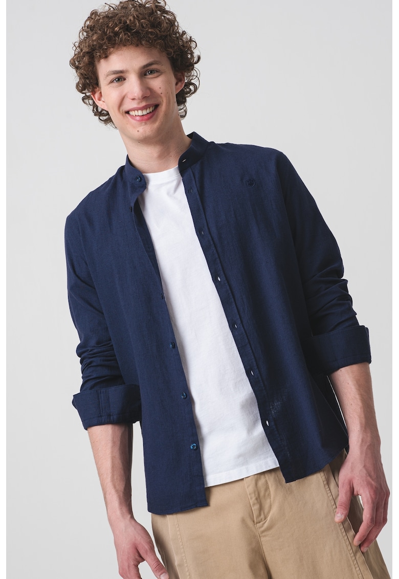 Caracteristici Culoare: bleumarin Material: bumbac Imprimeu: uni Stil: casual Croiala: regular fit Guler: mao Lungime maneca: maneca lunga Sistem inchidere: nasturi Compozitie Exterior: 100% bumbac Info model Modelul poarta un produs de marimea M. Marimi model: 190 cm inaltime