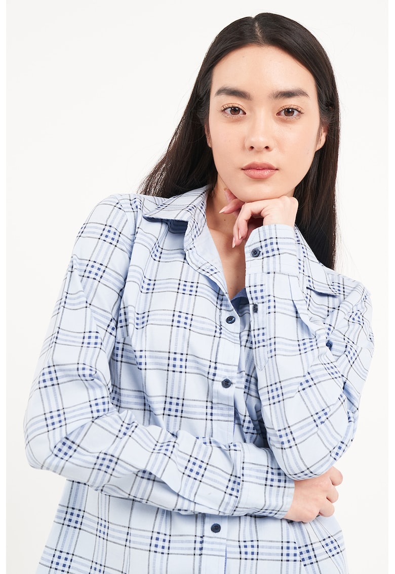 - albastru glaciar Imprimeu: carouri Stil: casual Material: bumbac Croiala: regular fit Guler: clasic Tip maneca: cu mansete cu nasturi Lungime maneca: maneca lunga Sistem inchidere: nasturi Compozitie Exterior: 97% bumbac