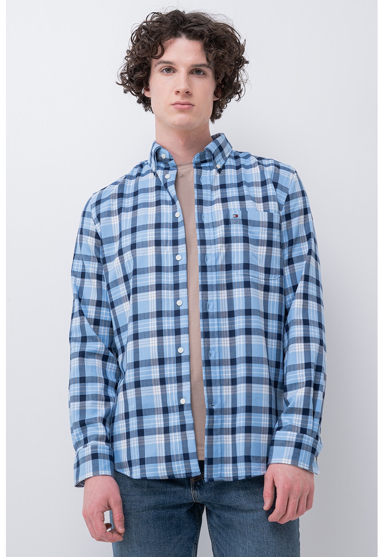 - viscoza Imprimeu: carouri Stil: casual Croiala: regular fit Lungime maneca: maneca lunga Sistem inchidere: nasturi Compozitie Exterior: 65% poliester reciclat
