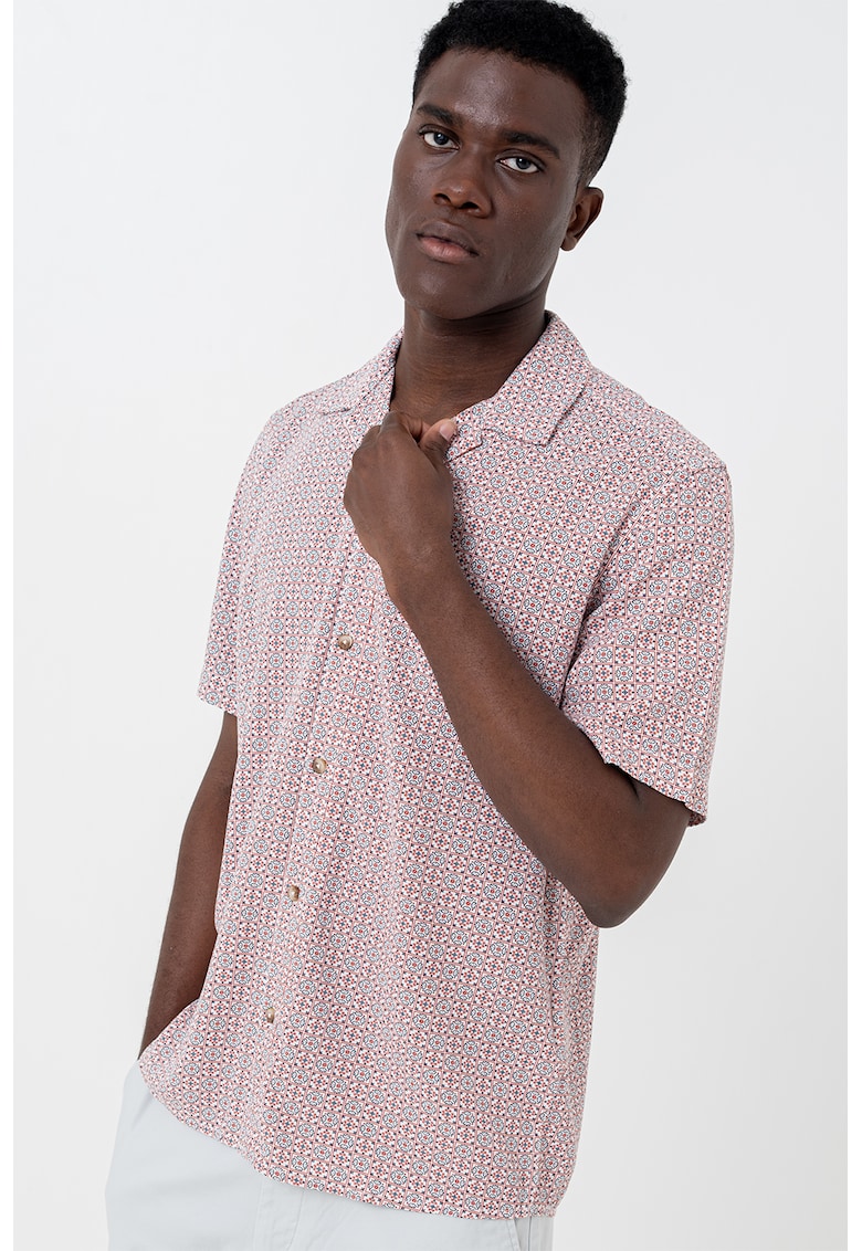 - negru Material: viscoza Imprimeu: etnic Stil: casual Croiala: regular fit Guler: cu revere Lungime maneca: maneca scurta Sistem inchidere: nasturi Compozitie Exterior: 100% viscoza (lenzing™ ecovero™) Info model Modelul poarta un produs de marimea M. Marimi model: 184 cm inaltime