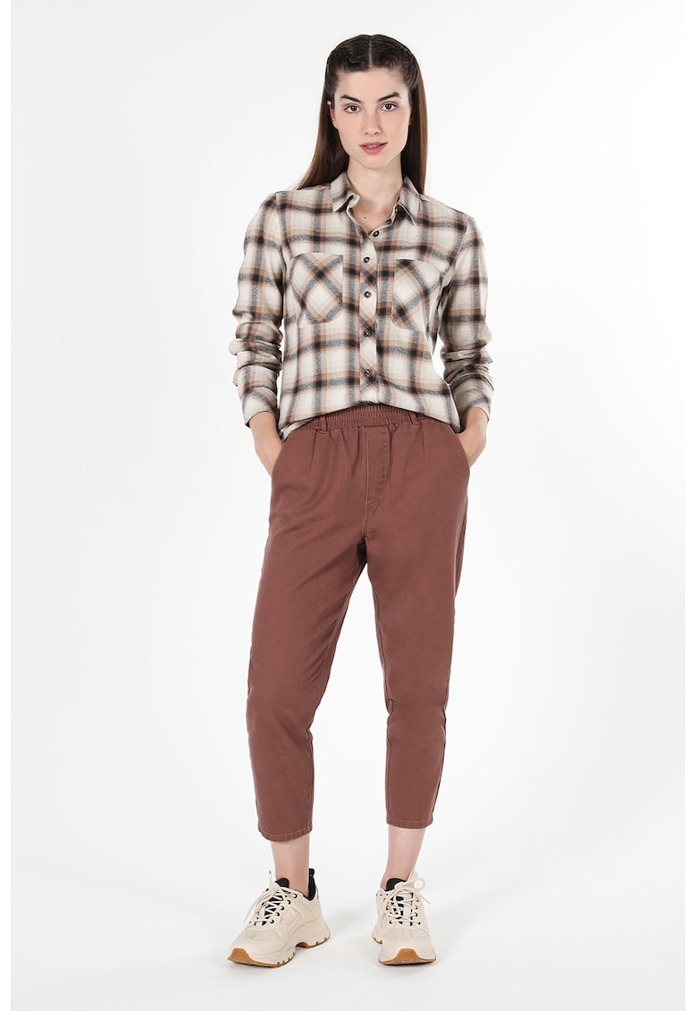 - bej Imprimeu: carouri Stil: casual Material: bumbac Croiala: regular fit Guler: ascutit Tip maneca: cu mansete Lungime maneca: maneca lunga Buzunare: 2 pe piept Sistem inchidere: nasturi Compozitie Exterior: 100% bumbac