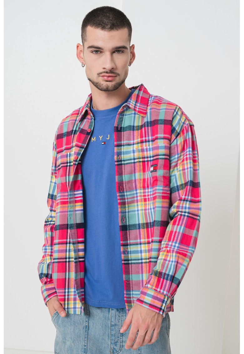 - albastru Material: bumbac Imprimeu: carouri Stil: casual Croiala: regular fit Lungime maneca: maneca lunga Sistem inchidere: nasturi Compozitie Exterior: 100% bumbac regenerativ Info model Modelul poarta un produs de marimea M. Marimi model: 190 cm inaltime