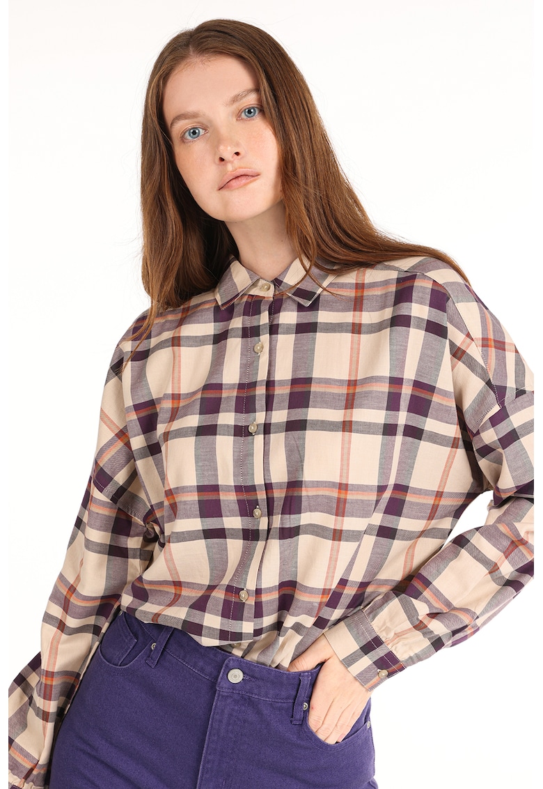 - bej Imprimeu: carouri Stil: casual Material: bumbac Croiala: regular fit Guler: ascutit Tip maneca: mansete cu nasturi Lungime maneca: maneca lunga Sistem inchidere: nasturi Compozitie Exterior: 100% bumbac