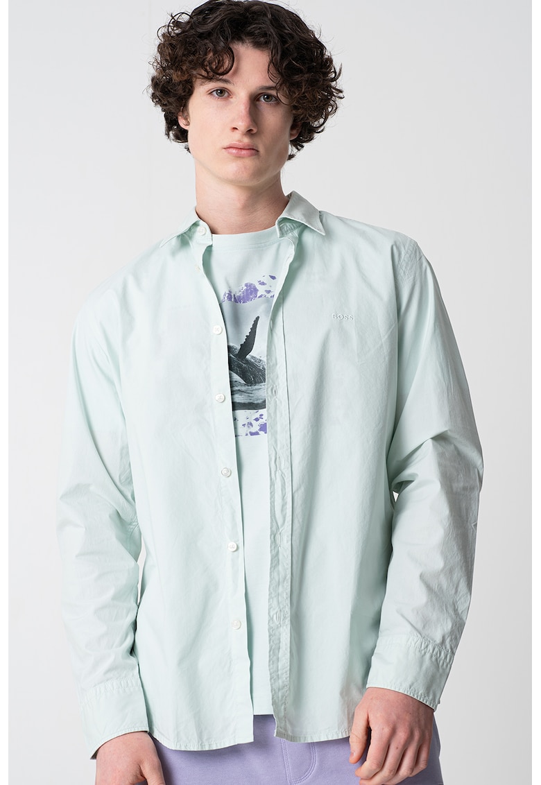 Caracteristici Culoare: verde pal Material: bumbac Imprimeu: logo Stil: casual Croiala: regular fit Lungime maneca: maneca lunga Sistem inchidere: nasturi Compozitie Exterior: 100% bumbac Info model Modelul poarta un produs de marimea M. Marimi model: 189 cm inaltime