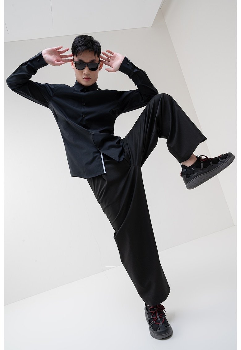 Caracteristici Culoare: negru Material: bumbac Imprimeu: uni Stil: casual Croiala: regular fit Guler: ascutit Lungime maneca: maneca lunga Sistem inchidere: nasturi Compozitie Exterior: 100% bumbac Info model Modelul poarta un produs de marimea 40. Marimi model: 183 cm inaltime