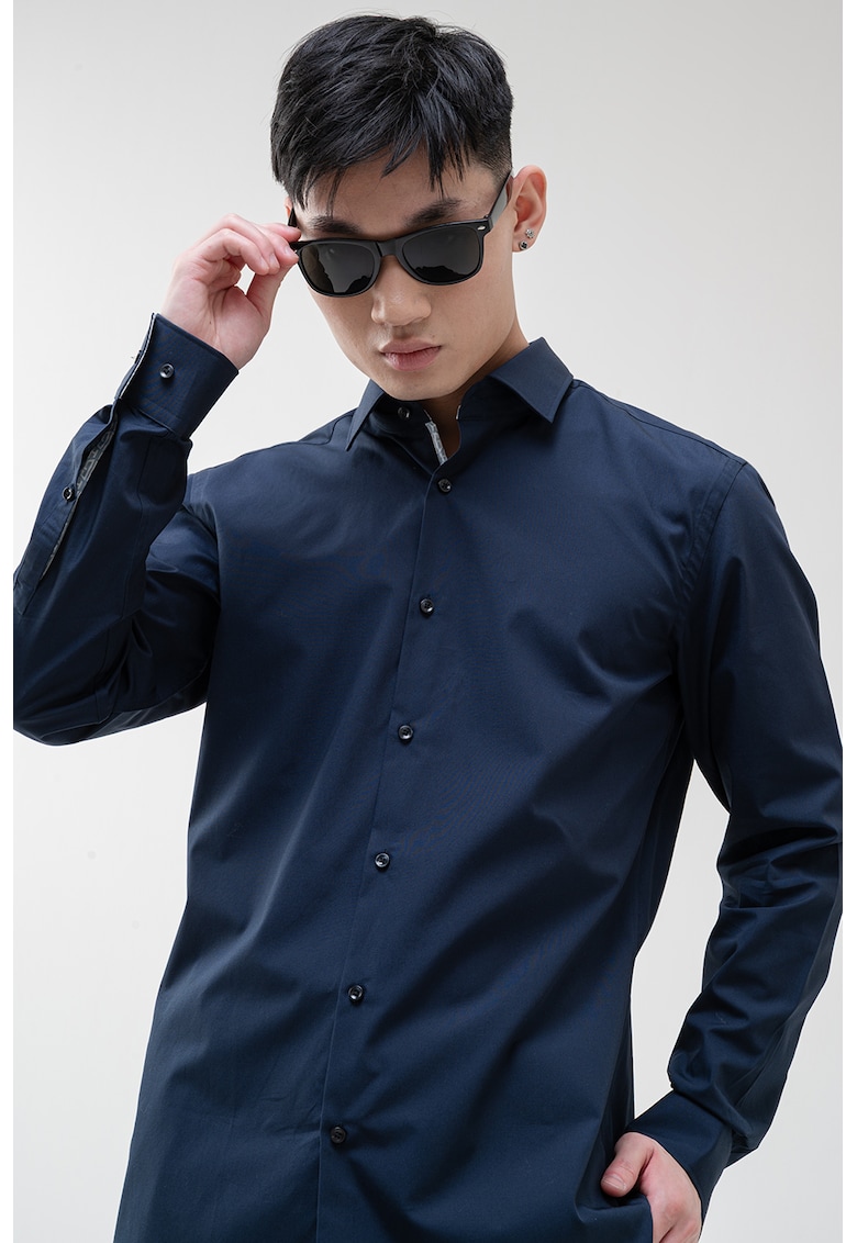 Caracteristici Culoare: albastru ultramarin Material: bumbac Imprimeu: uni Stil: casual Croiala: regular fit Guler: ascutit Lungime maneca: maneca lunga Sistem inchidere: nasturi Compozitie Exterior: 100% bumbac Info model Modelul poarta un produs de marimea 40. Marimi model: 183 cm inaltime